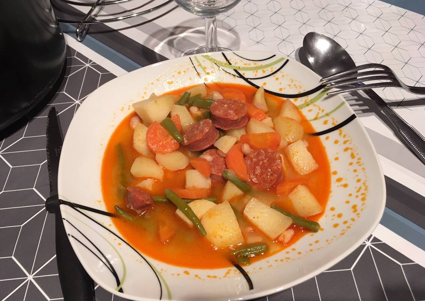 - Couper les légumes en morceaux pas trop gros les faire dorer 3 minutes (pour ma part j’ utilise mon cookéo) ou une cocotte minute fera très bien l’affaire, jouter ensuite le chorizo et les haricots coco blanc, ajouter 1 litre d’eau et laisser cuire 10 mns et bon appétit 😋