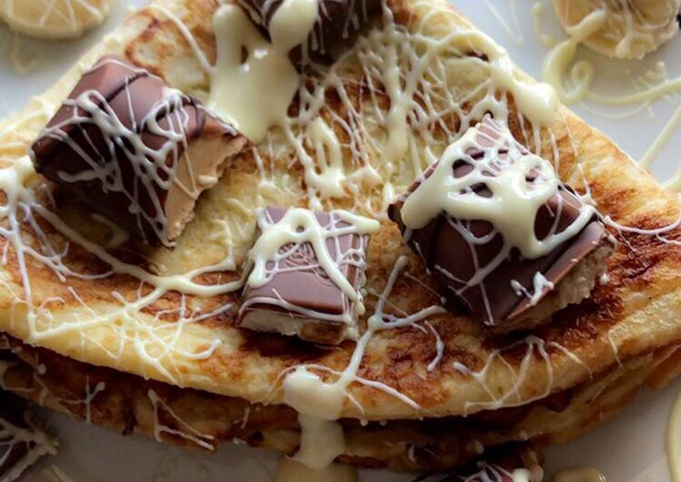 - Décorer votre crêpe selon vos envies, avec des morceaux de banane, du kinder Bueno et kinder country