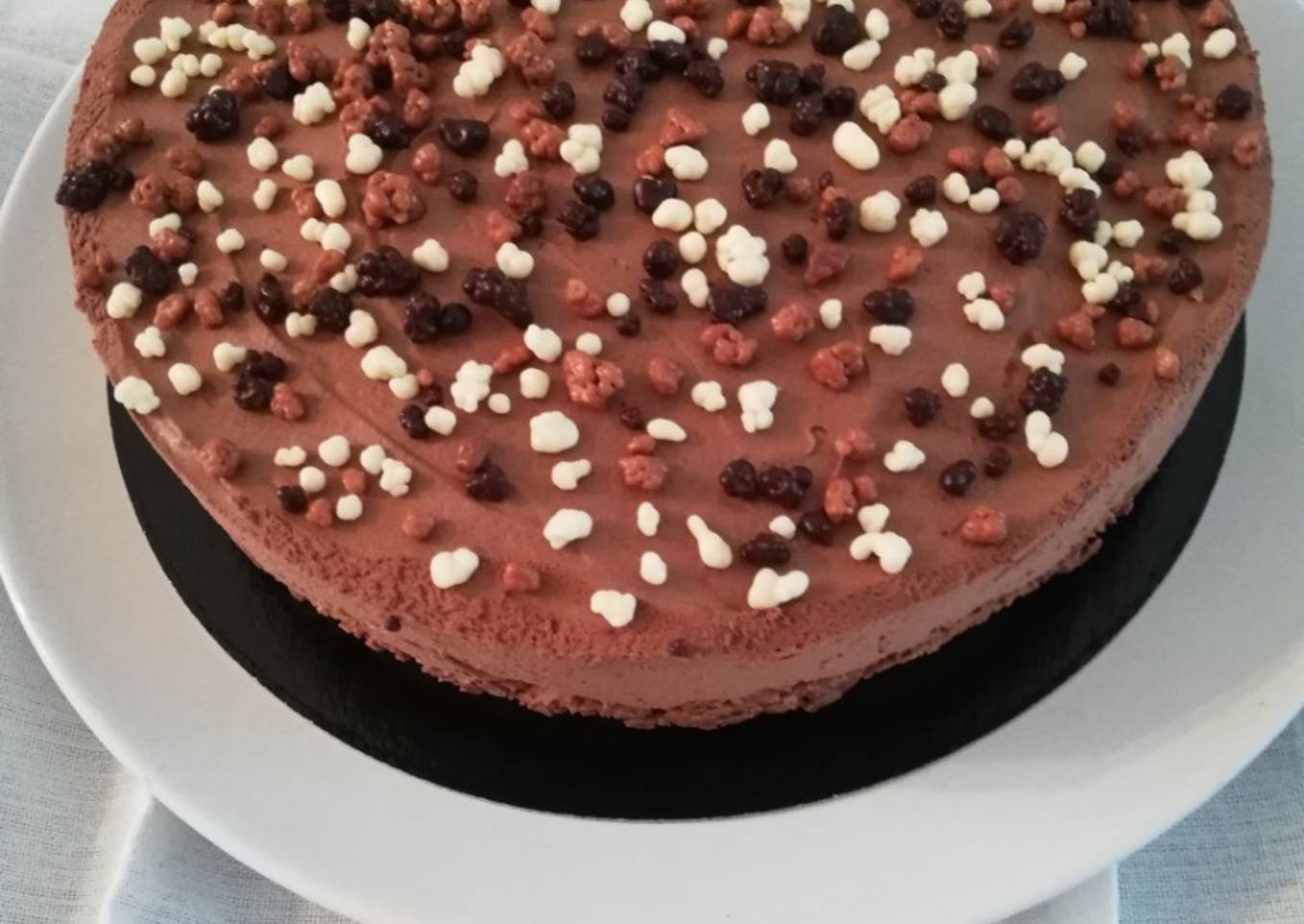 Versez cette mousse sur le praliné croustillant, lissez bien et remettre au frigo minimum 4 h 00 avant de démouler.
